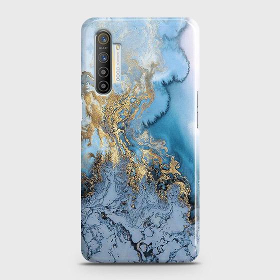 Realme XT Cover - Trendy Golden & Blue Ocean Marble Printed Hard Case with Life Time Colors Guarantee
