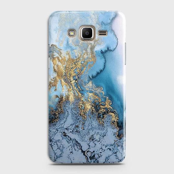 Samsung Galaxy J7 Core / J7 Nxt Cover - Trendy Golden & Blue Ocean Marble Printed Hard Case with Life Time Colors Guarantee b57