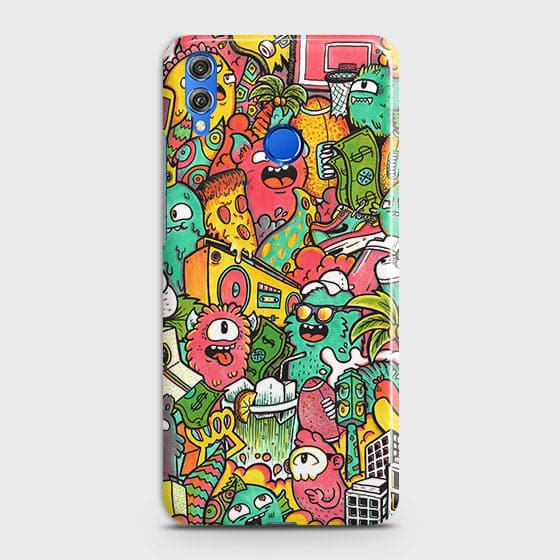Huawei Honor 8C Cover - Matte Finish - Candy Colors Trendy Sticker Collage Printed Hard Case with Life Time Colors Guarantee