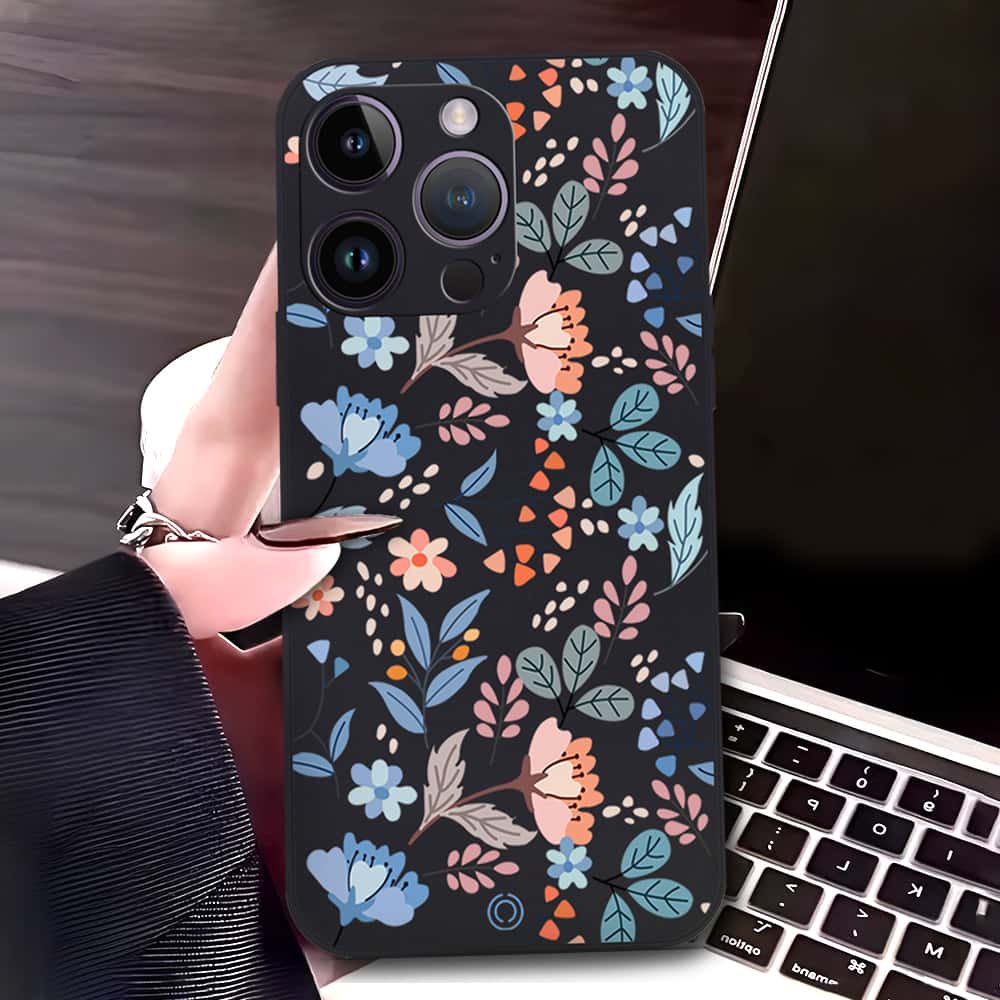 iPhone 14 Pro Cover - Black - D1 - ONation Floral Series - HQ Liquid Silicone Soft Case