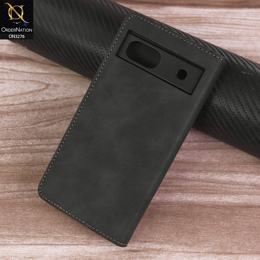 Google Pixel 7a Cover - Black -  ONation Business Flip Series - Premium Magnetic Leather Wallet Flip book Card Slots Soft Case