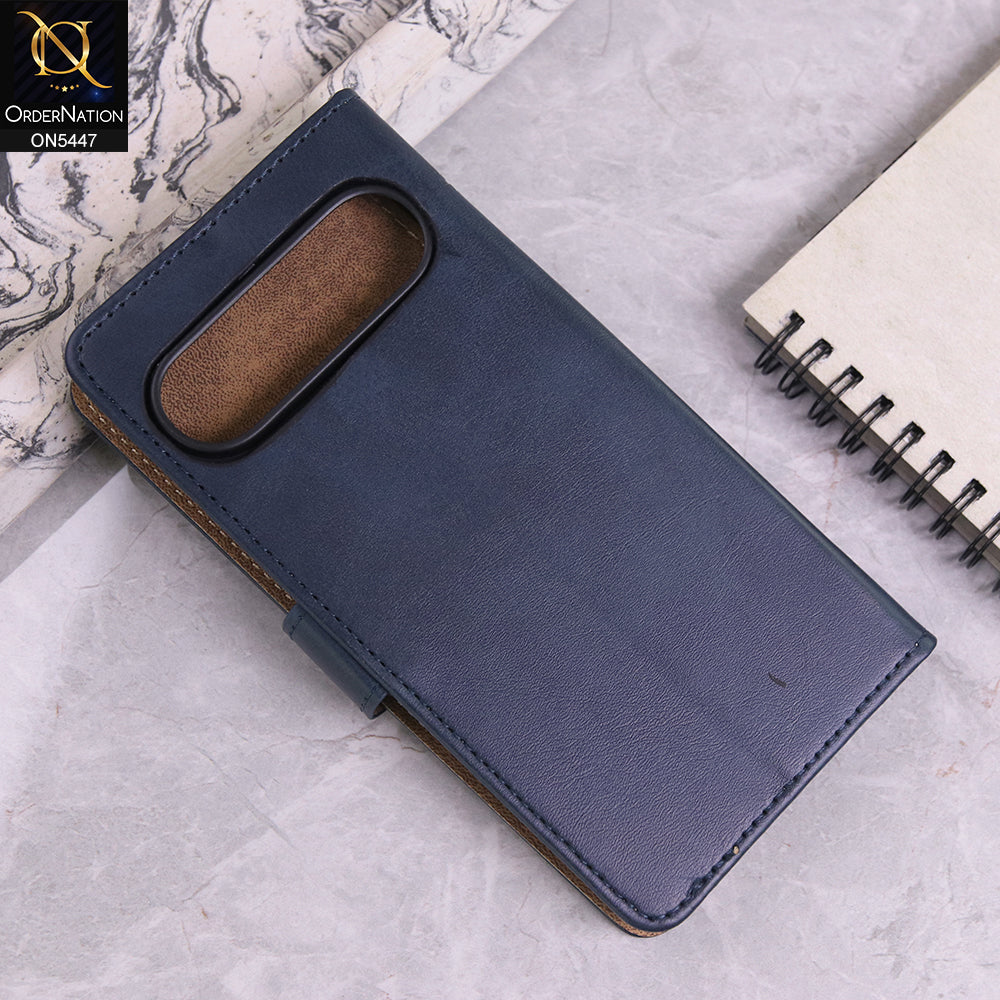 Google Pixel 9 Pro Cover - Blue - Premium Leather Megantic Flip Book Covers With Card Holding Option