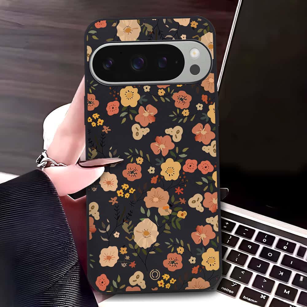 Google Pixel 9 Pro XL Cover - Black - D3 - ONation Floral Series - HQ Liquid Silicone Soft Case