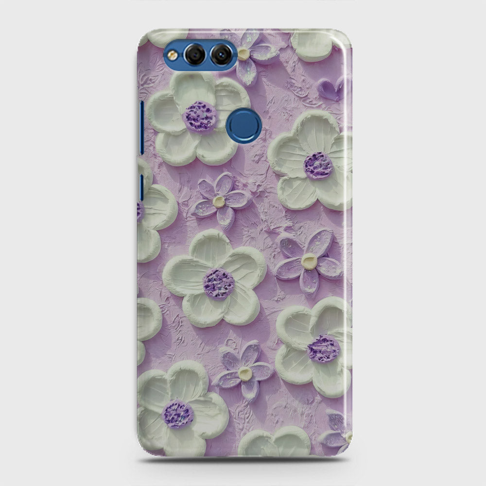 Huawei Honor 7X Cover - Floral Series - Design 4 - Purple & White - Matte Finish - Snap On Hard Case with LifeTime Colors Guarantee