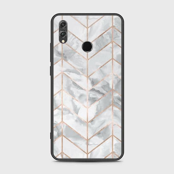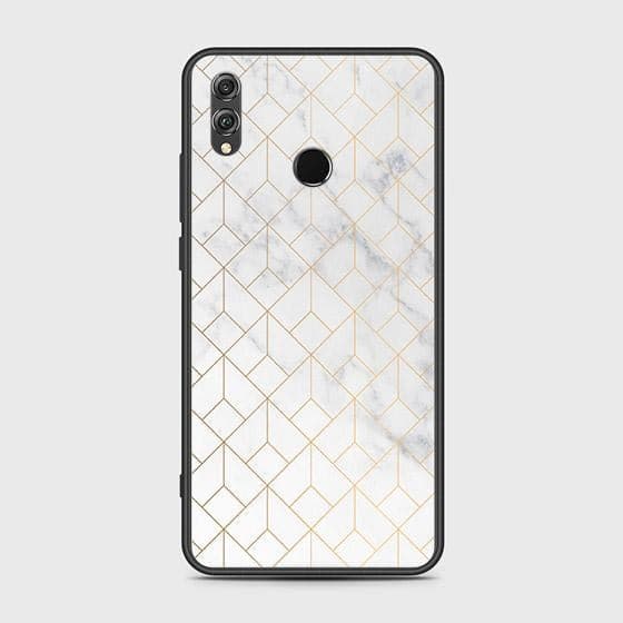 Huawei Honor 8X Cover - White Marble Series 2 - HQ Ultra Shine Premium Infinity Glass Soft Silicon Borders Case