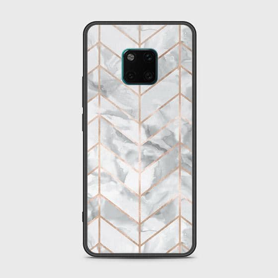 Huawei Mate 20 Pro Cover - White Marble Series 2 - HQ Ultra Shine Premium Infinity Glass Soft Silicon Borders Case