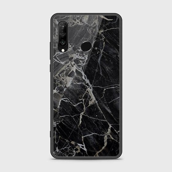 Huawei P30 lite Cover - Design 445 Black Marble Series - HQ Ultra Shine Premium Infinity Glass Soft Silicon Borders Case (Fast Delivery)