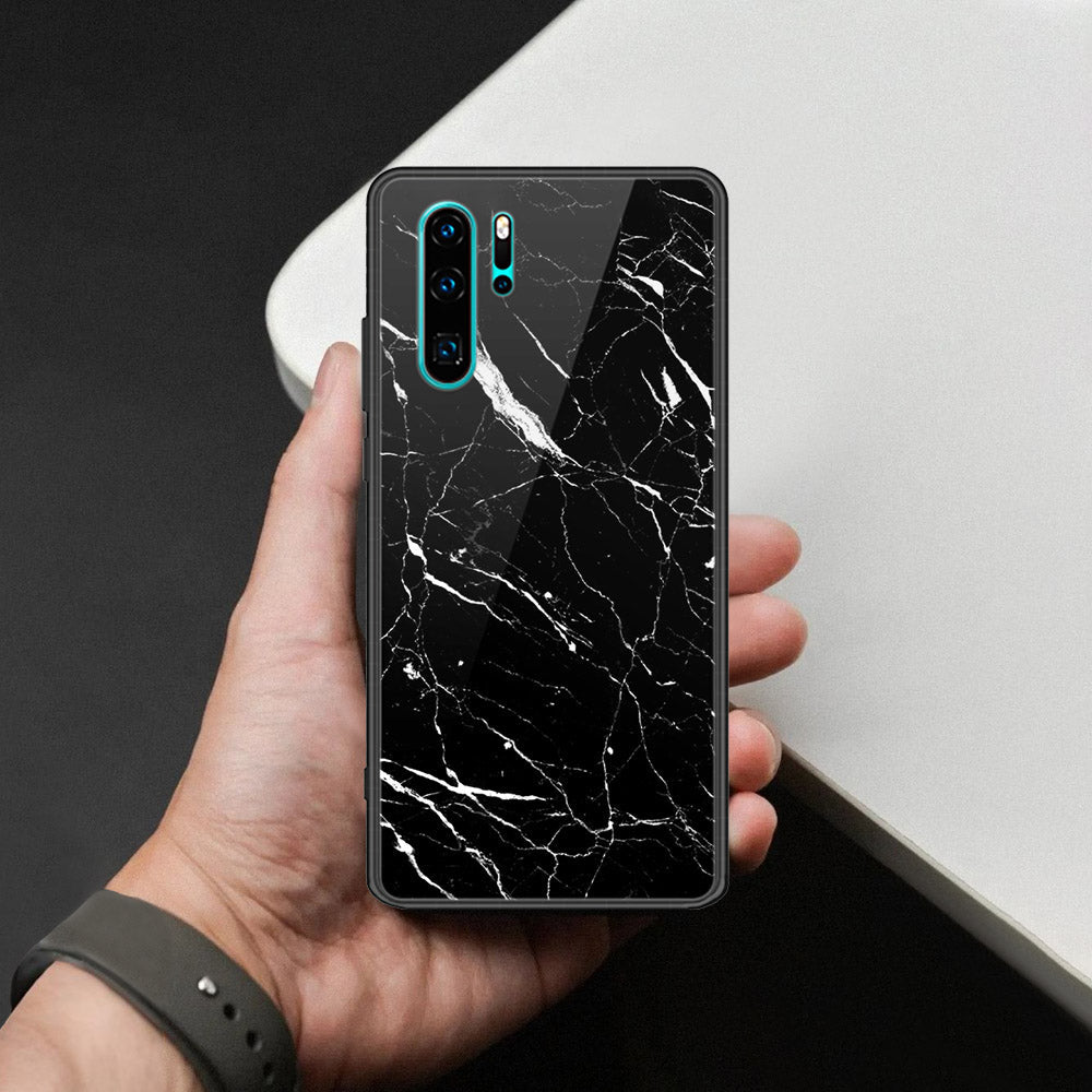 Huawei P30 Pro Cover - Black Marble Series  - HQ Ultra Shine Premium Infinity Glass Soft Silicon Borders Case