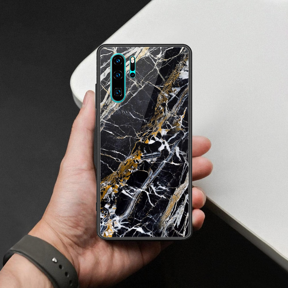 Huawei P30 Pro Cover - Black Marble Series - HQ Ultra Shine Premium Infinity Glass Soft Silicon Borders Case