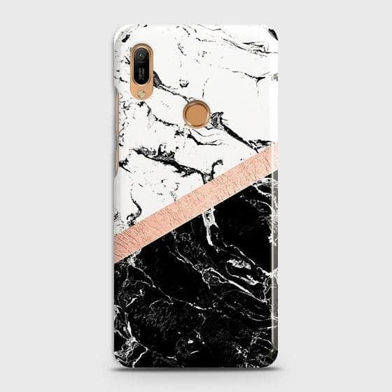 Huawei Y6s 2019 Cover - Black & White Marble With Chic RoseGold Strip Case with Life Time Colors Guarantee