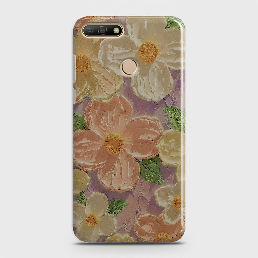 Huawei Y7 2018 Cover - Floral Series - Design 11 - White & Green - Matte Finish - Snap On Hard Case with LifeTime Colors Guarantee