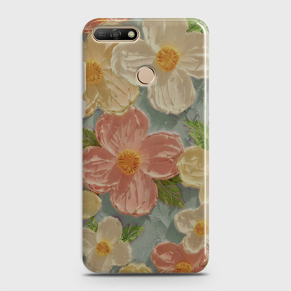 Huawei Y7 2018 Cover - Floral Series - Design 16 - Cyan & Pink - Matte Finish - Snap On Hard Case with LifeTime Colors Guarantee