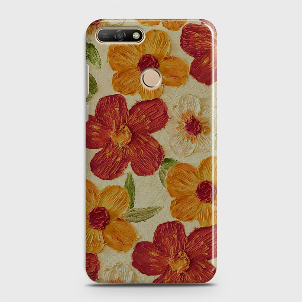 Huawei Y7 2018 Cover - Floral Series - Design 6 - Red & Orange - Matte Finish - Snap On Hard Case with LifeTime Colors Guarantee