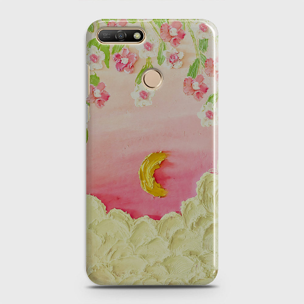 Huawei Y7 2018 Cover - Floral Series - Design 7 - Pink & Yellow - Matte Finish - Snap On Hard Case with LifeTime Colors Guarantee