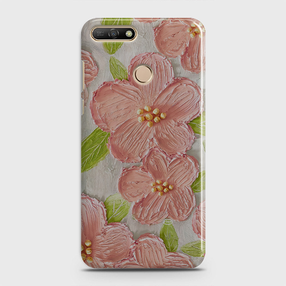 Huawei Y7 2018 Cover - Floral Series - Design 9 - Pink & Green - Matte Finish - Snap On Hard Case with LifeTime Colors Guarantee