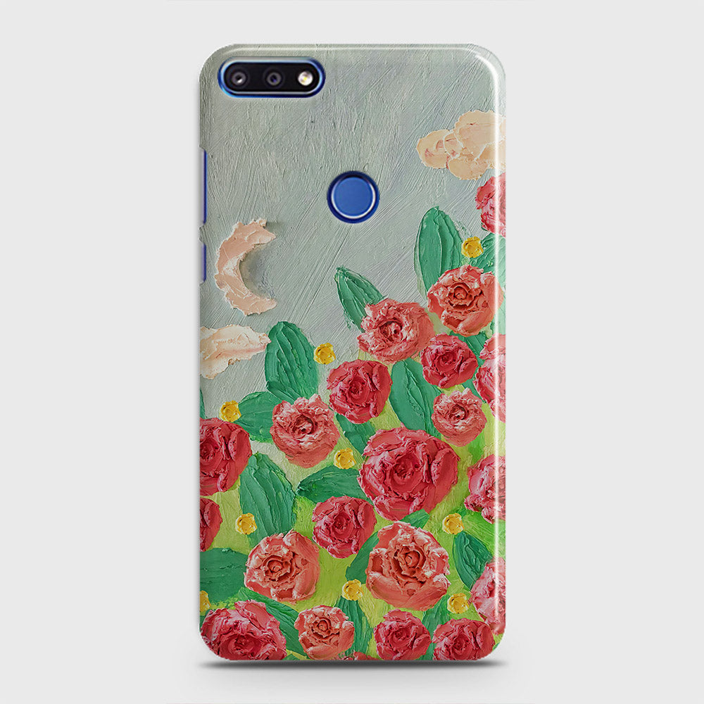 Huawei Y7 Prime 2018 Cover - Floral Series - Design 10 - Red & Green - Matte Finish - Snap On Hard Case with LifeTime Colors Guarantee