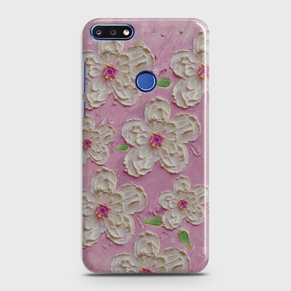 Huawei Y7 Prime 2018 Cover - Floral Series - Design 5 - Pink & White - Matte Finish - Snap On Hard Case with LifeTime Colors Guarantee