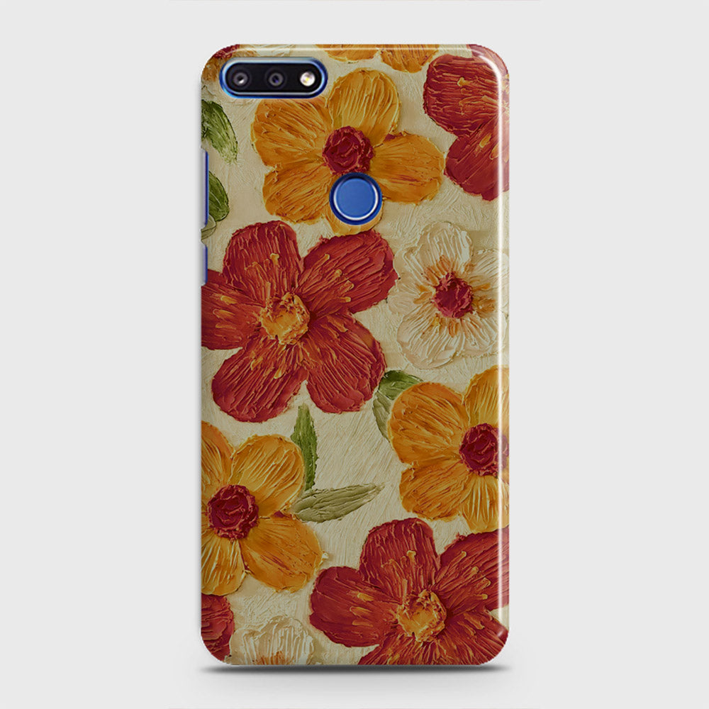 Huawei Y7 Prime 2018 Cover - Floral Series - Design 6 - Red & Orange - Matte Finish - Snap On Hard Case with LifeTime Colors Guarantee