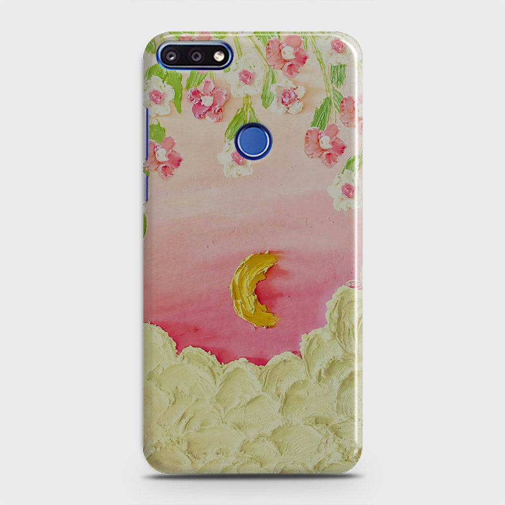 Huawei Y7 Prime 2018 Cover - Floral Series - Design 7 - Pink & Yellow - Matte Finish - Snap On Hard Case with LifeTime Colors Guarantee