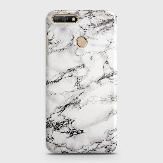 Huawei Y7 prime 2018 Cover - Matte Finish - Trendy Mysterious White Marble Printed Hard Case with Life Time Colors Guarantee ( Fast Delivery )