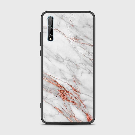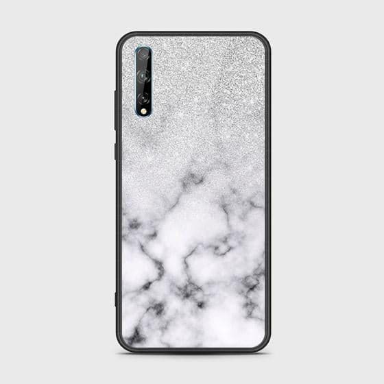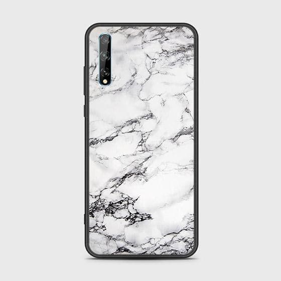 Huawei Y8p Cover - White Marble Series - HQ Ultra Shine Premium Infinity Glass Soft Silicon Borders Case