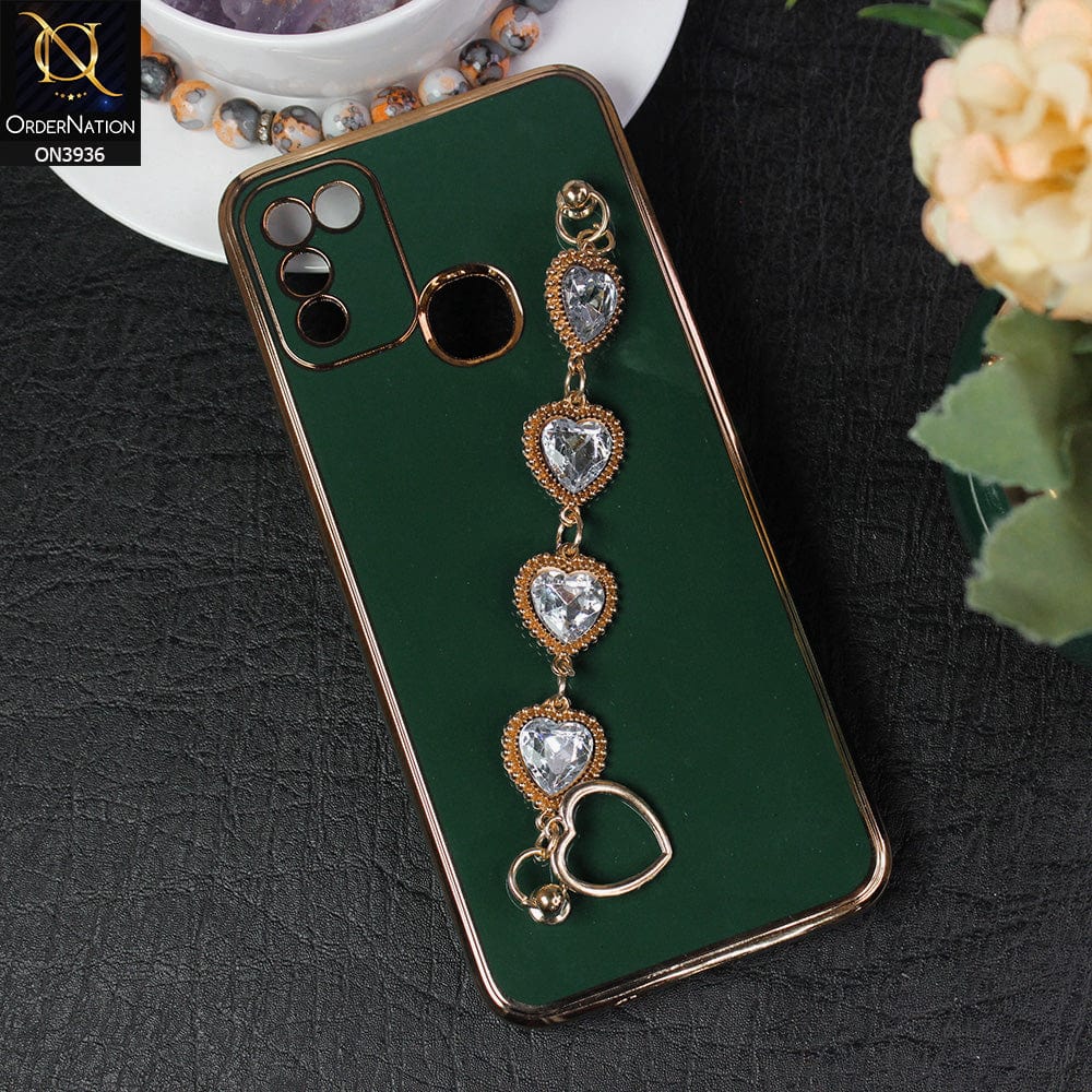 Infinix Hot 10 Play Cover - Green - New Electroplating Silk Shiny Camera Bumper Soft Case With Heart Chain Holder
