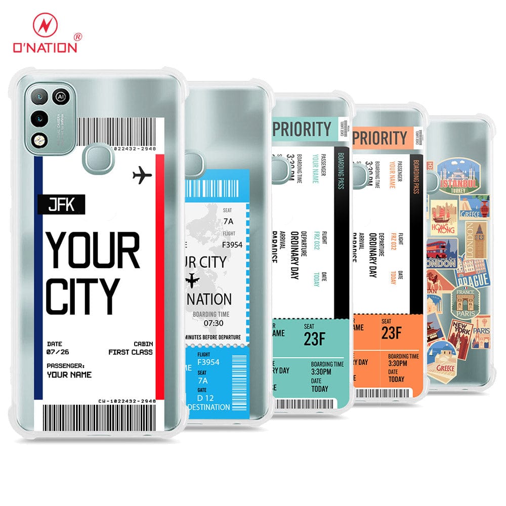 Infinix Hot 10 Play Cover - Personalised Boarding Pass Ticket Series - 5 Designs - Clear Phone Case - Soft Silicon Borders
