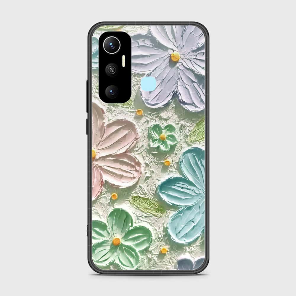Infinix Hot 11 Cover - Floral Series - Design 15 - Blue & Green - HQ Ultra Shine Premium Infinity Glass Soft Silicon Borders Case