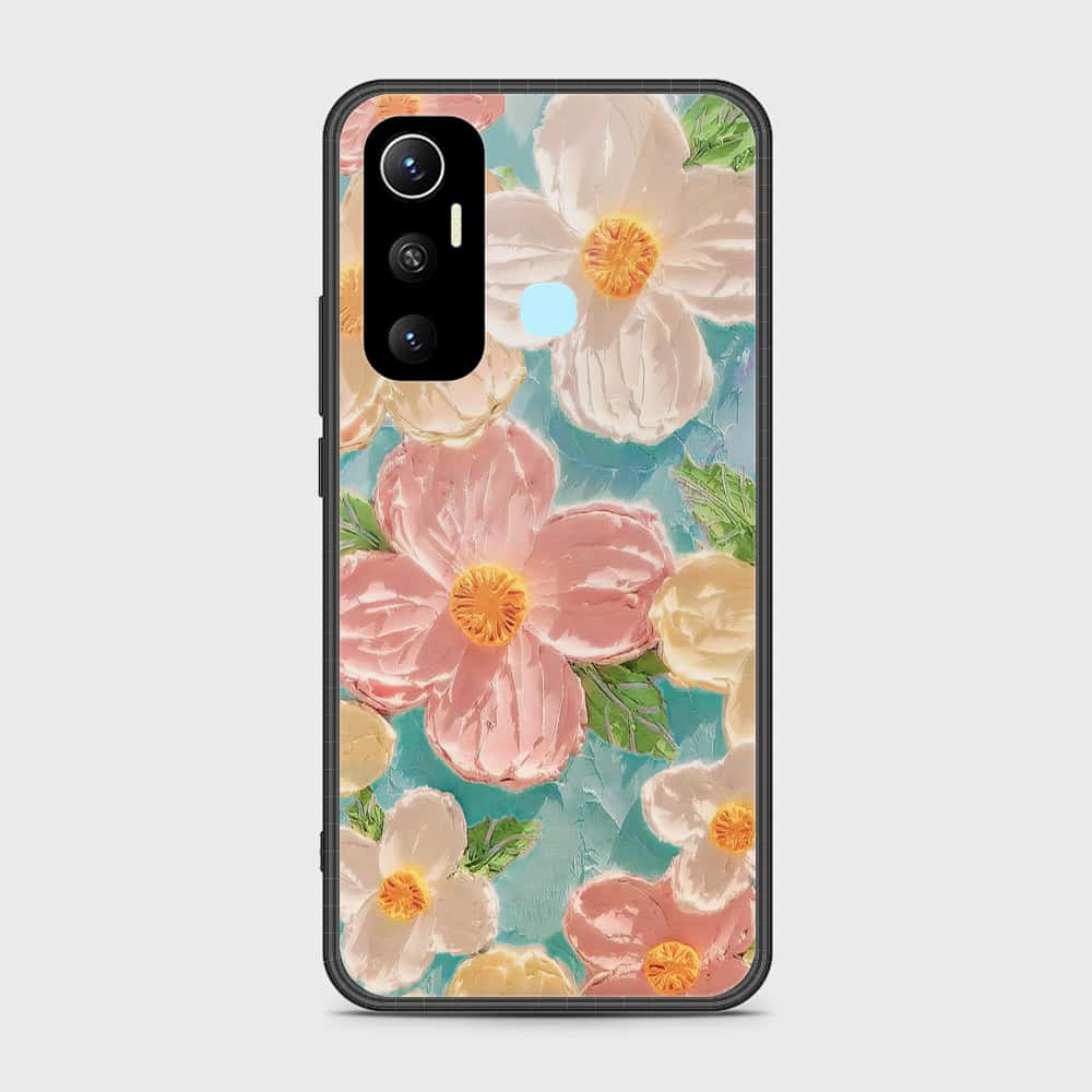 Infinix Hot 11 Cover - Floral Series - Design 16 - Cyan & Pink - HQ Ultra Shine Premium Infinity Glass Soft Silicon Borders Case