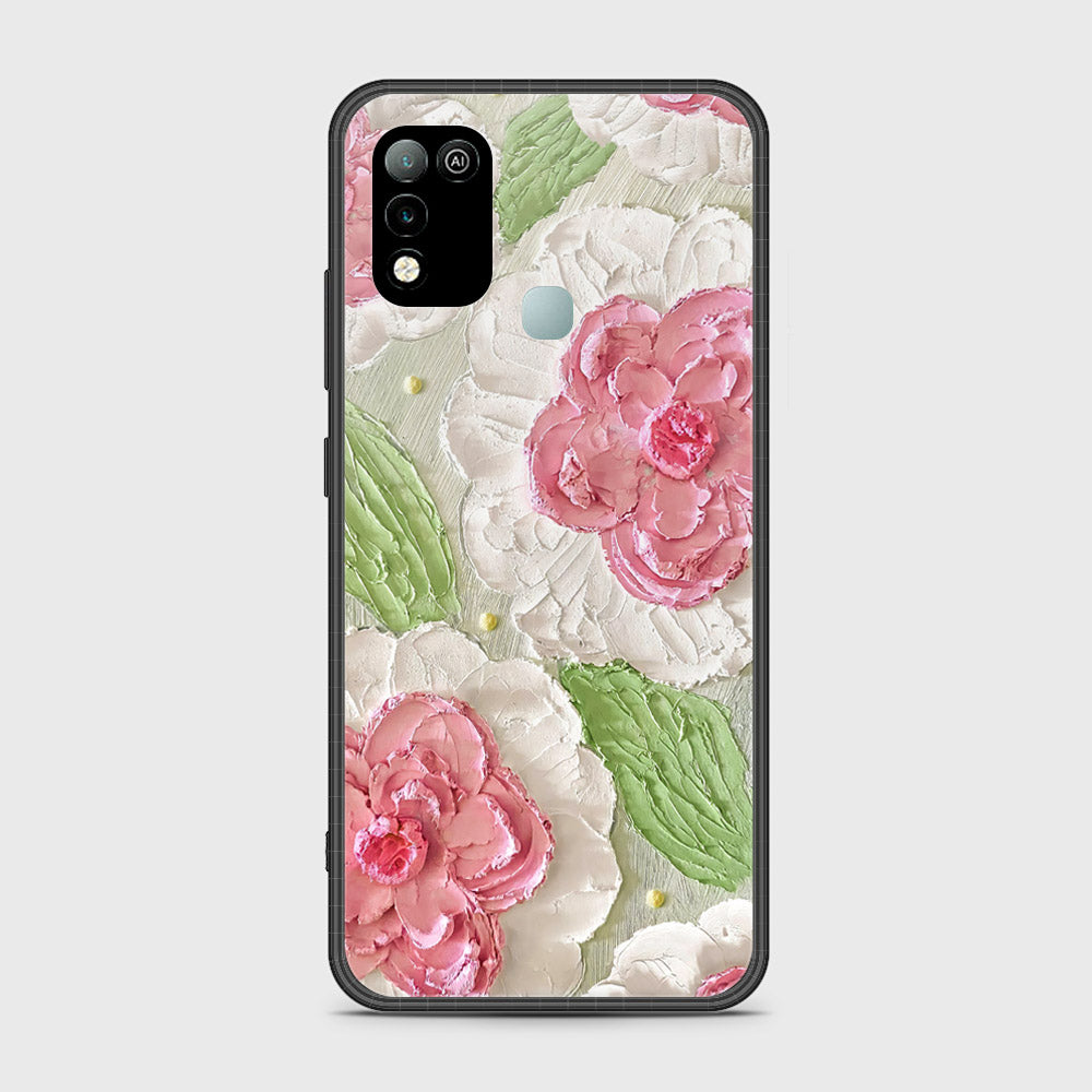 Infinix Hot 11 Play Cover - Floral Series - Design 13 - Offwhite & Green - HQ Ultra Shine Premium Infinity Glass Soft Silicon Borders Case