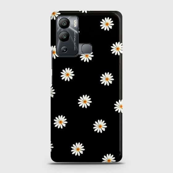 Infinix Hot 12i Cover - White Bloom Flowers with Black Background Printed Hard Case with Life Time Colors Guarantee