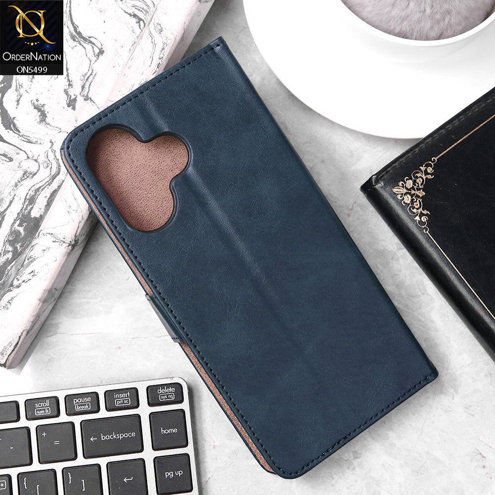 Infinix Hot 30 Cover - Blue - Premium PU Leather Magnetic Flip Book Card Slots Wallet Soft Case