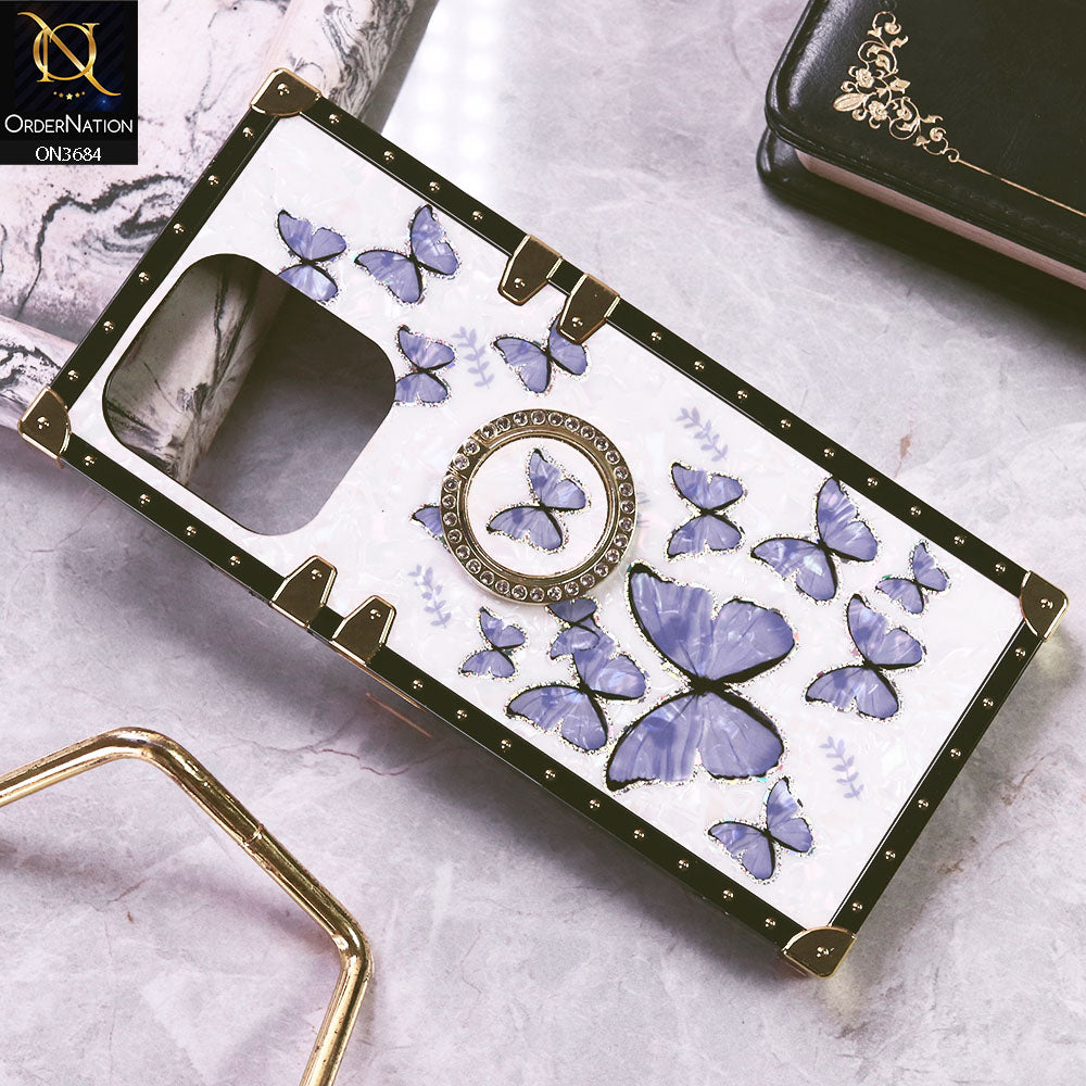 Infinix Hot 30 Cover - Design5 - Trendy Holographic Design Golden Square Case with Matching Bling Ring Holder