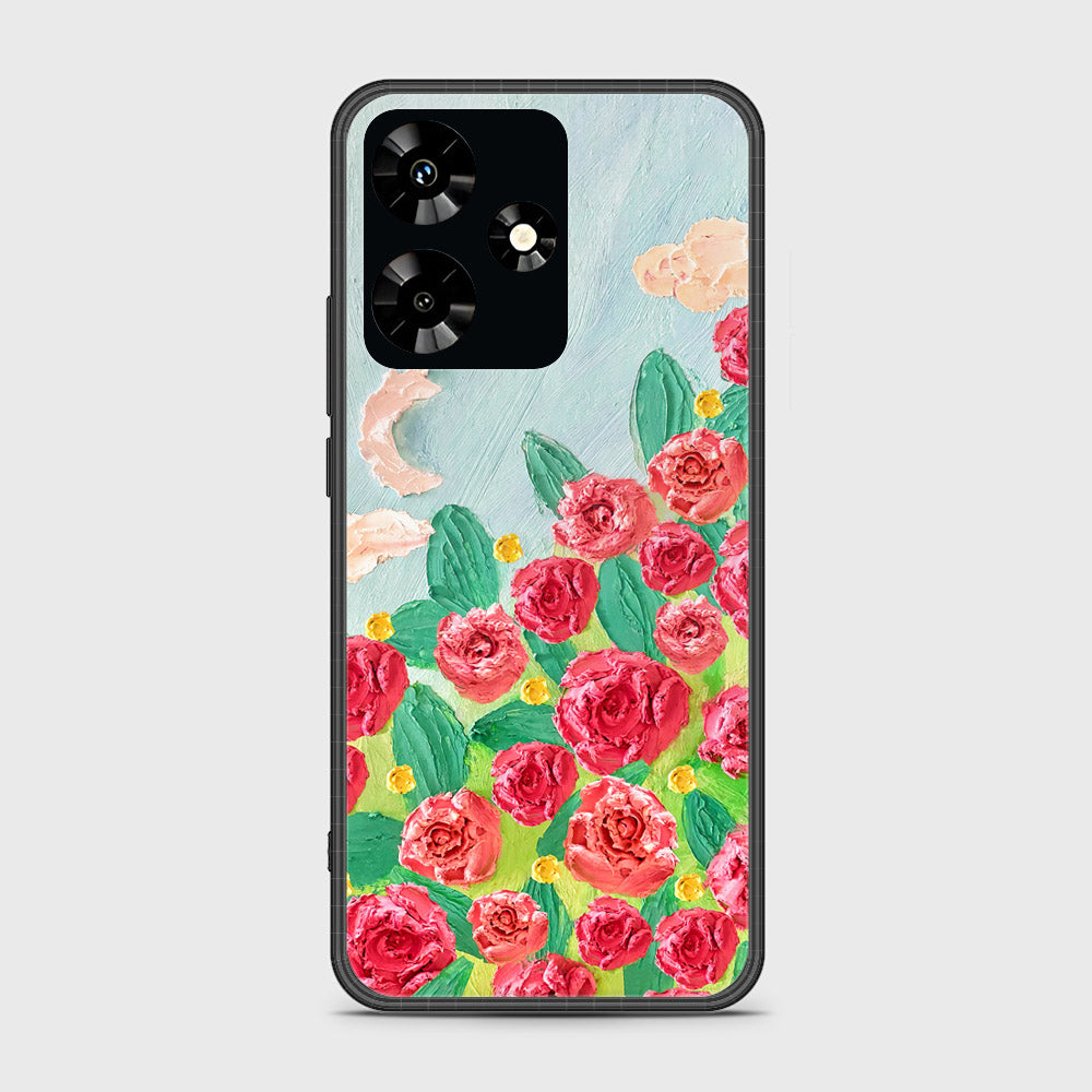 Infinix Hot 30 Cover - Floral Series - Design 10 - Red & Green - HQ Ultra Shine Premium Infinity Glass Soft Silicon Borders Case