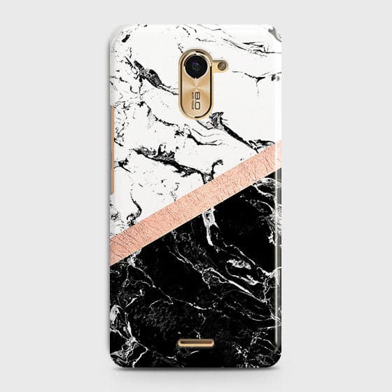 Infinix Hot 4 / Hot 4 Pro Cover - Black & White Marble With Chic RoseGold Strip Case with Life Time Colors Guarantee b51 ( Fast Delivery )