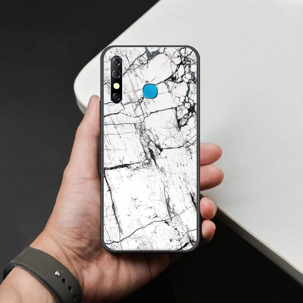Infinix Hot 8 Cover - White Marble Series 2 - HQ Ultra Shine Premium Infinity Glass Soft Silicon Borders Case