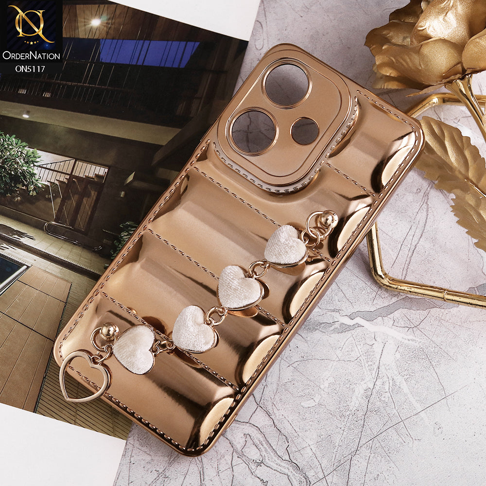 Infinix hot30i Cover - Golden - Cute Trendy Color Electroplating Stitched Coushion Style Soft Case with Loce Heart Chain Holder