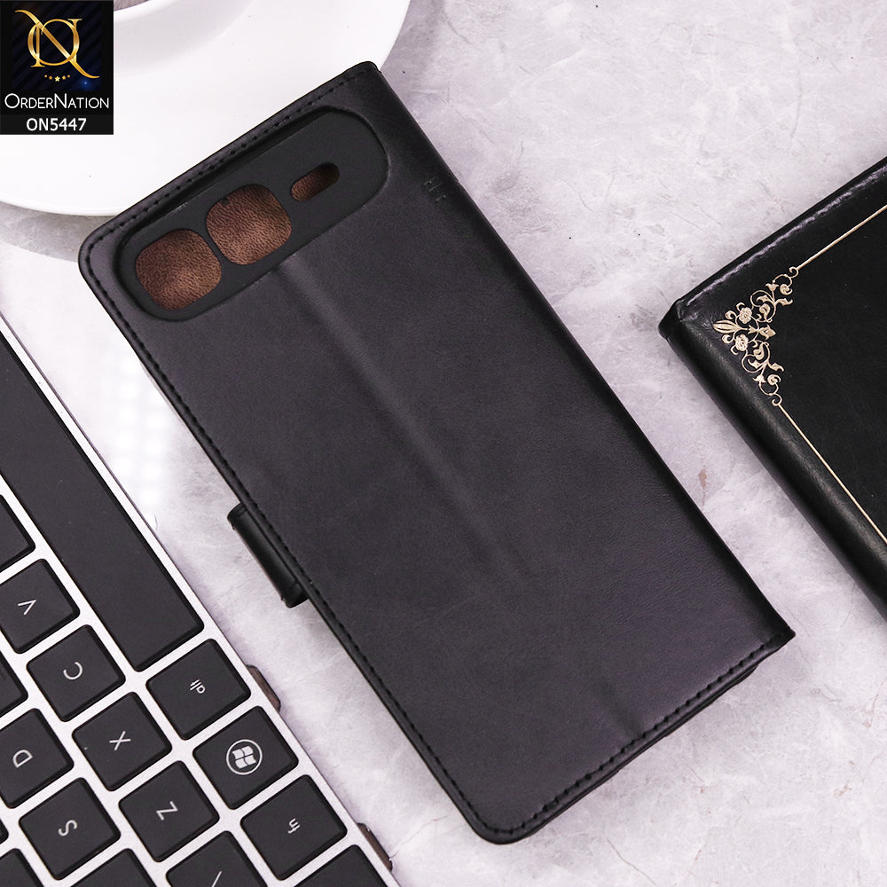 Infinix Smart 10 Plus Cover - Black - Premium Leather Megantic Flip Book Covers With Card Holding Option