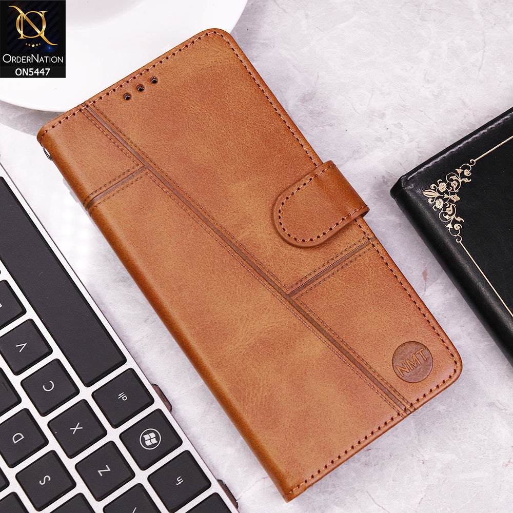 Infinix Smart 10 Plus Cover - Light Brown - Premium Leather Megantic Flip Book Covers With Card Holding Option