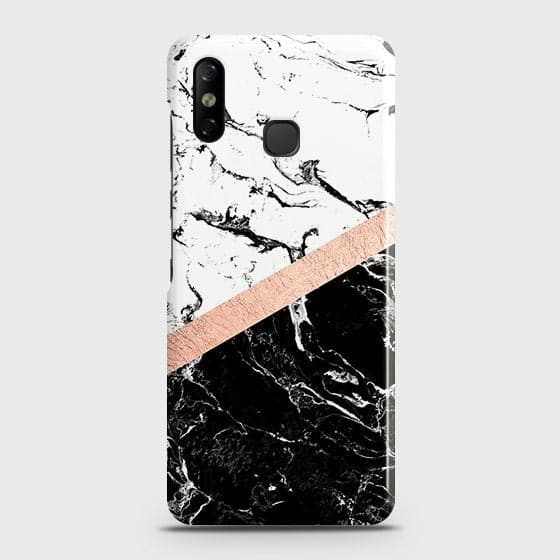 Infinix Smart 4 Cover - Black & White Marble With Chic RoseGold Strip Case with Life Time Colors Guarantee