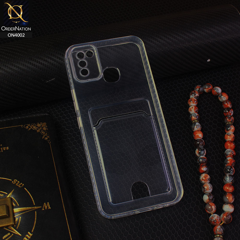 Infinix Smart 5 Cover - Transparent - Soft 4D Design Smart Pocket Card Holder Transparent Clear Soft Case