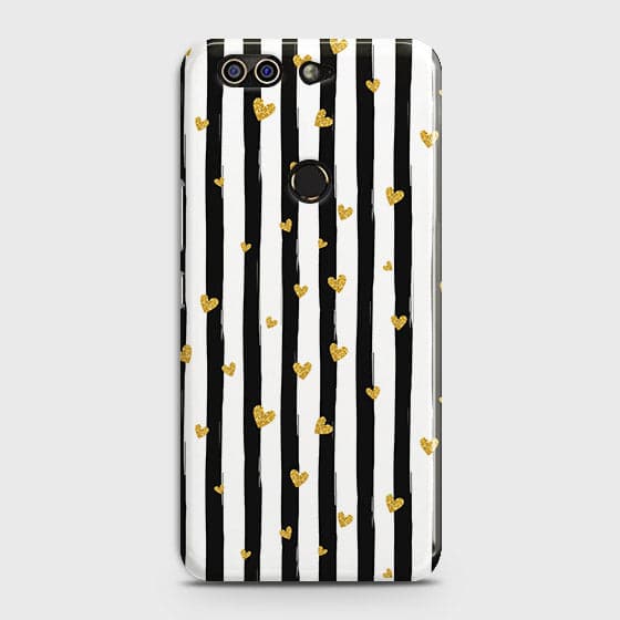 Infinix Zero 5 Cover - Trendy Black & White Lining With Golden Hearts Printed Hard Case with Life Time Colors Guarantee ( Fast Delivery )