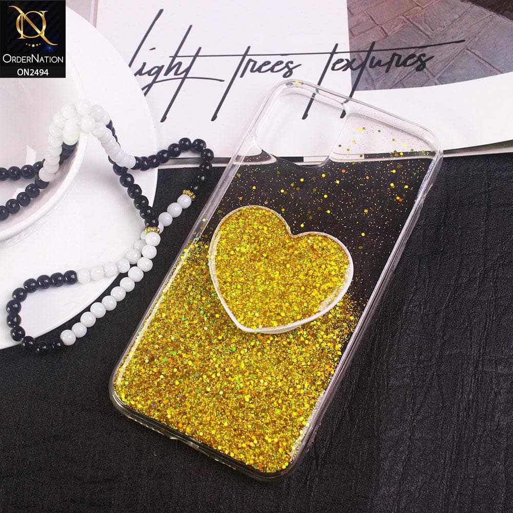 iPhone 11 Pro Cover- Design 2 - Stylish Bling Glitter Soft Case With Heart Mobile Holder - Glitter Does Not Move