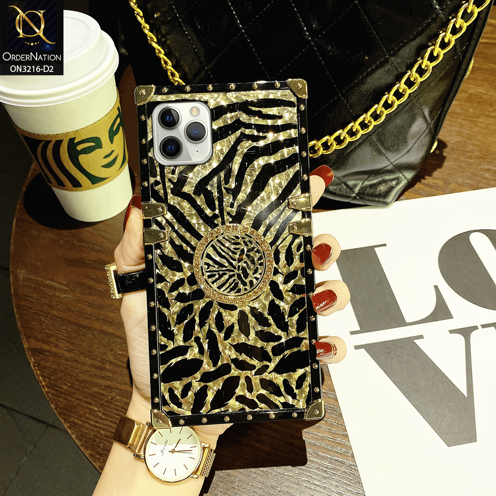 iPhone 11 Pro Cover - Design 2 - Trendy Stripes Pattern Golden Square Case With Matching Bling Ring Holder