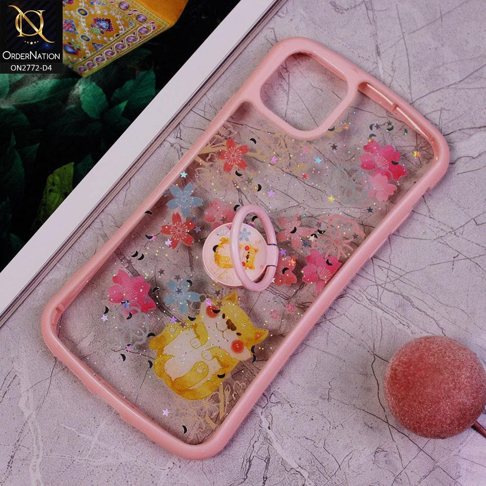 iPhone 11 Pro Cover -Design 4 - New Stylish Floral Glitter Soft Border Case with Ring Holder