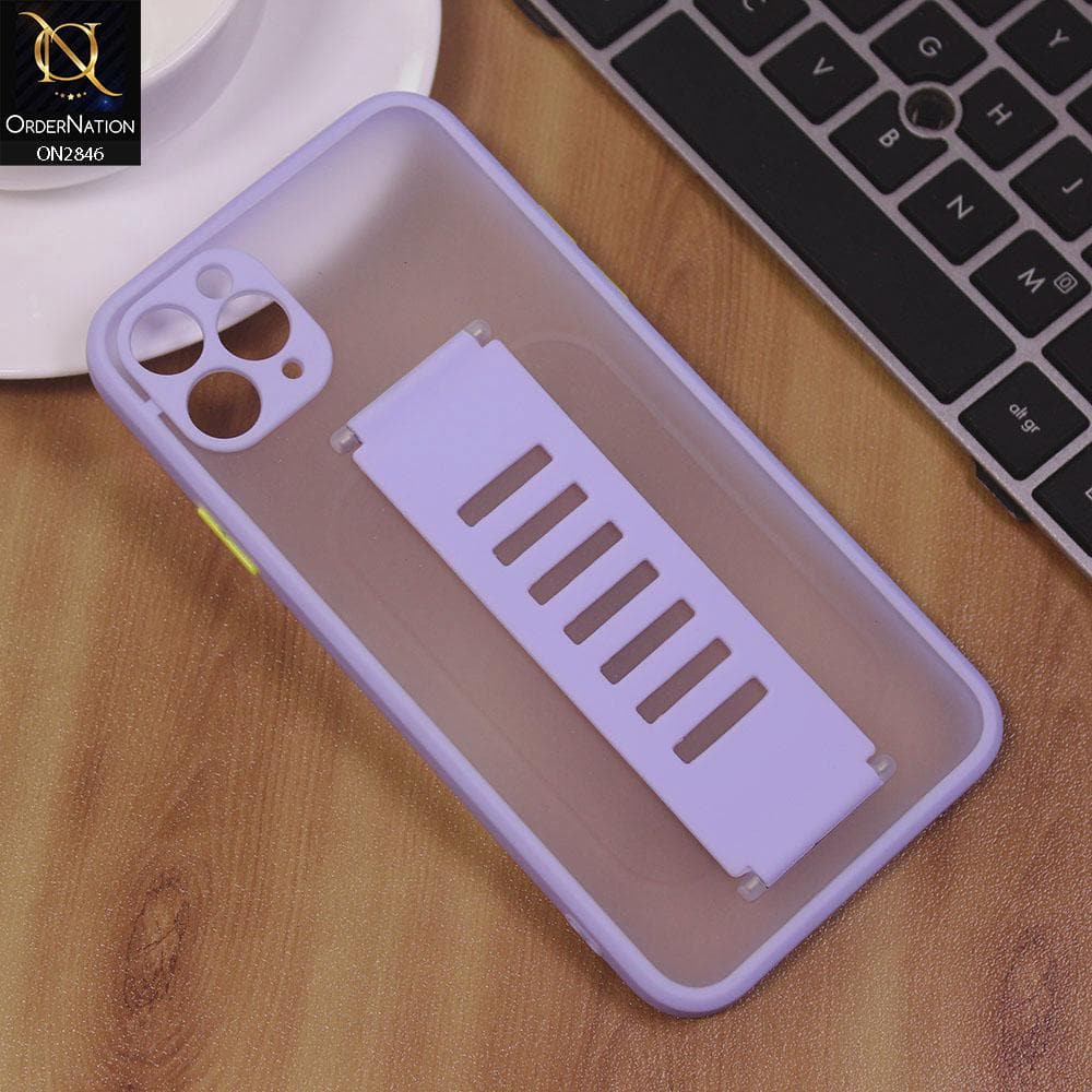 iPhone 11 Pro Cover - Purple - Semi Tranparent Soft Borders Matte Hard PC with Grip Holder Camera Protection Case