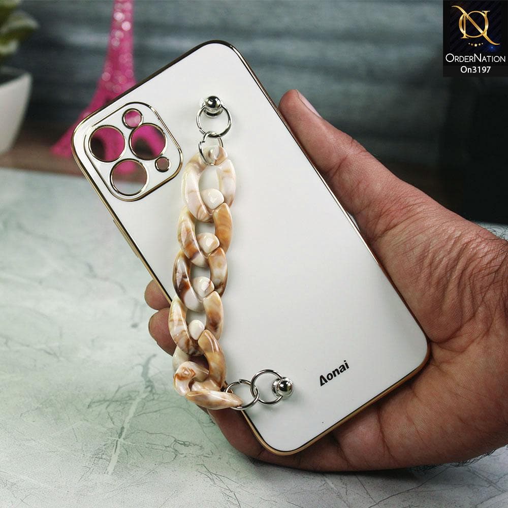 iPhone 11 Pro Cover - White - Shiny Electroplated Borders Camera Protection Case with Marble Style Chain Holder