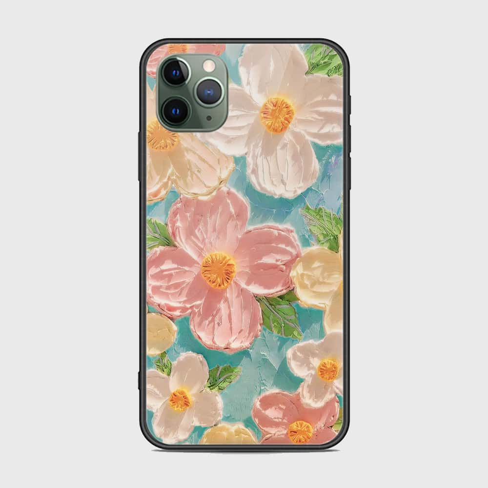 iPhone 11 Pro Max Cover - Floral Series - Design 16 - Cyan & Pink - HQ Ultra Shine Premium Infinity Glass Soft Silicon Borders Case