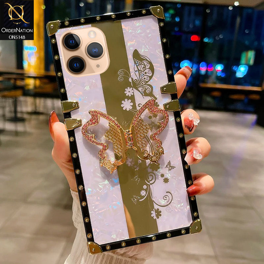 iPhone 11 Pro Max Cover - Lilac - Luxury Shiny Rhinestone Butterfly Electroplated Square Trunk Soft Case