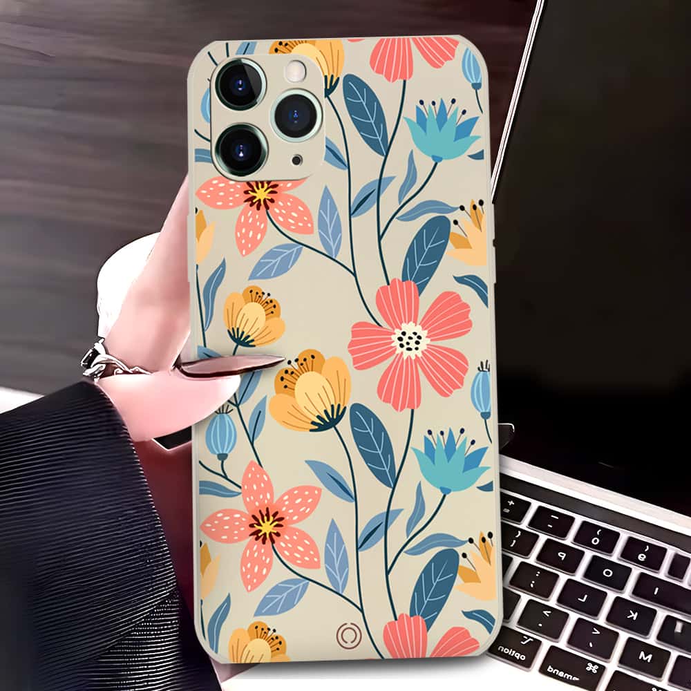 iPhone 11 Pro Max Cover - Off White - D2 - ONation Floral Series - HQ Liquid Silicone Soft Case
